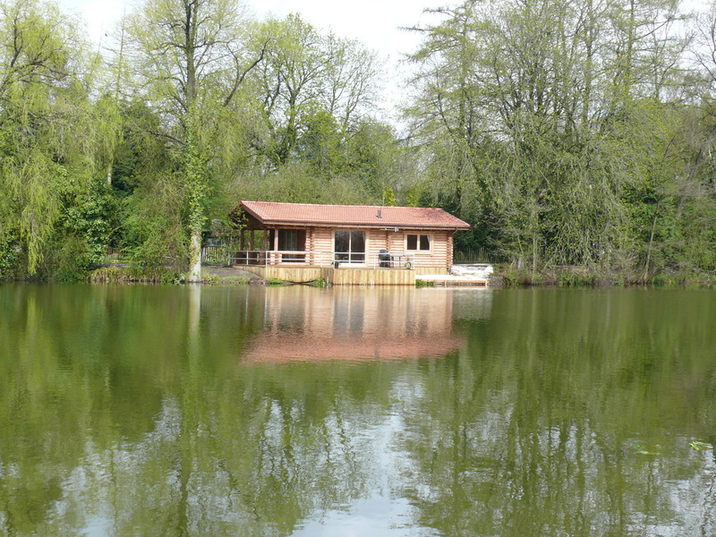 fishing swims are located in front of the log cabin.