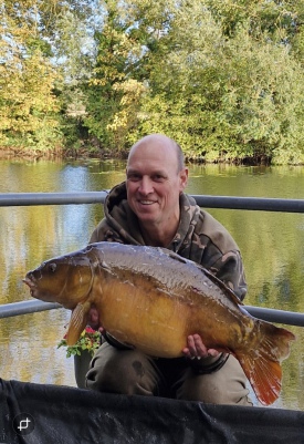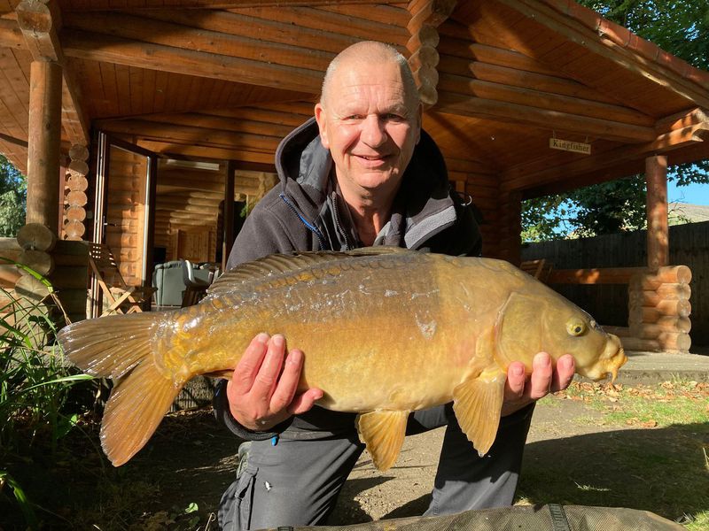 Lewis Hayes 20lb Carp August 2022 Kingfisher log cabin